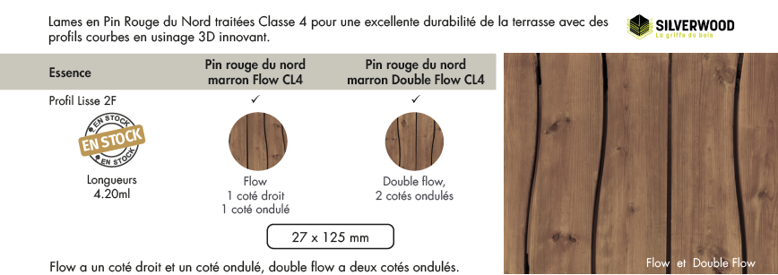 - Terrasses en Pin Rouge Flow et double flow